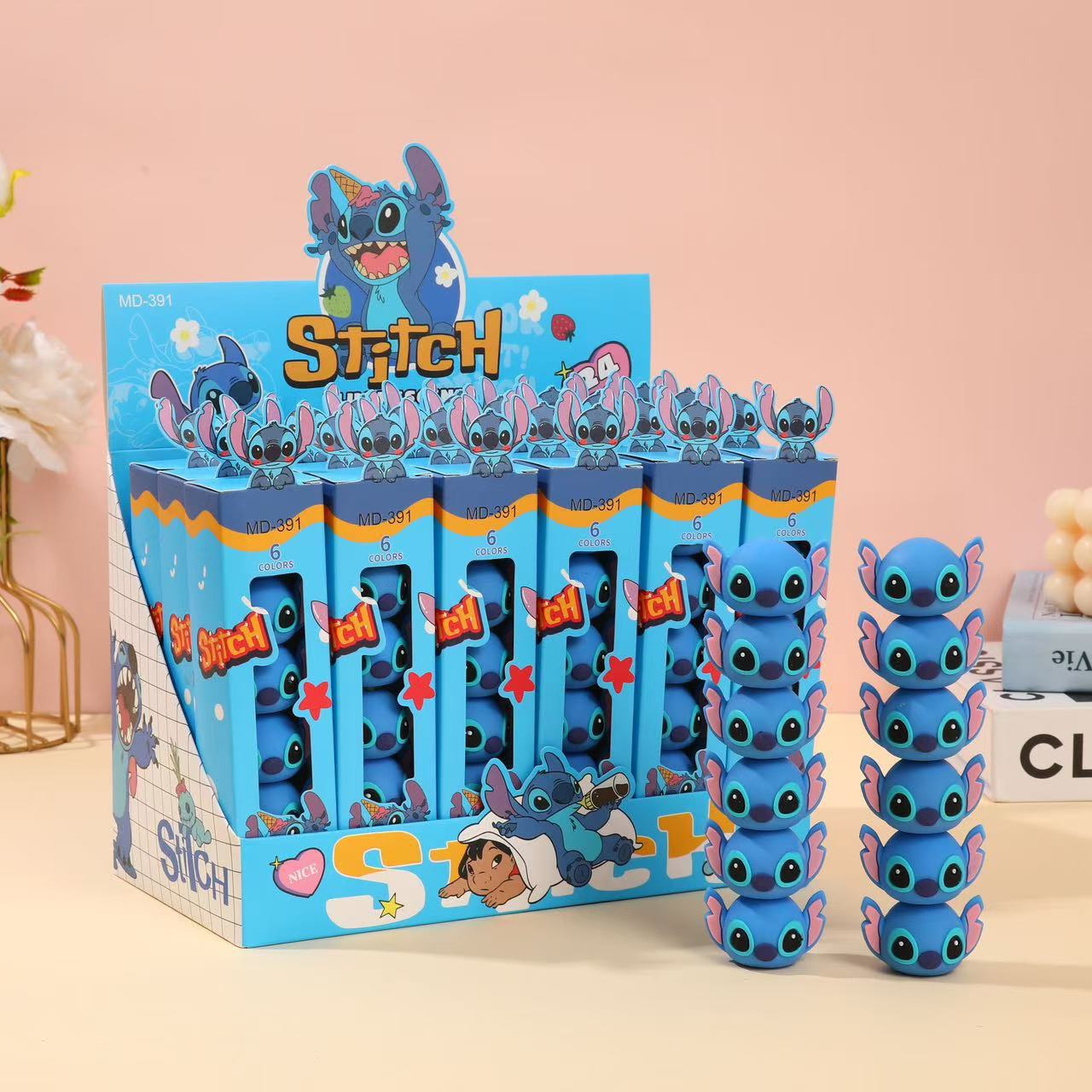 Cute Stitch stackable character highlighters that combine fun and function. Each mini Stitch piece stacks neatly and features a colorful tip, making them perfect for kids, students, and collectors—ideal for school or office desks or as a playful gift.
